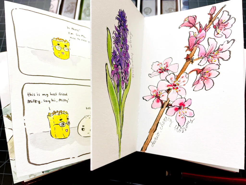 - An open book – Now take one of those books and open it. Sketch it from an interesting angle.